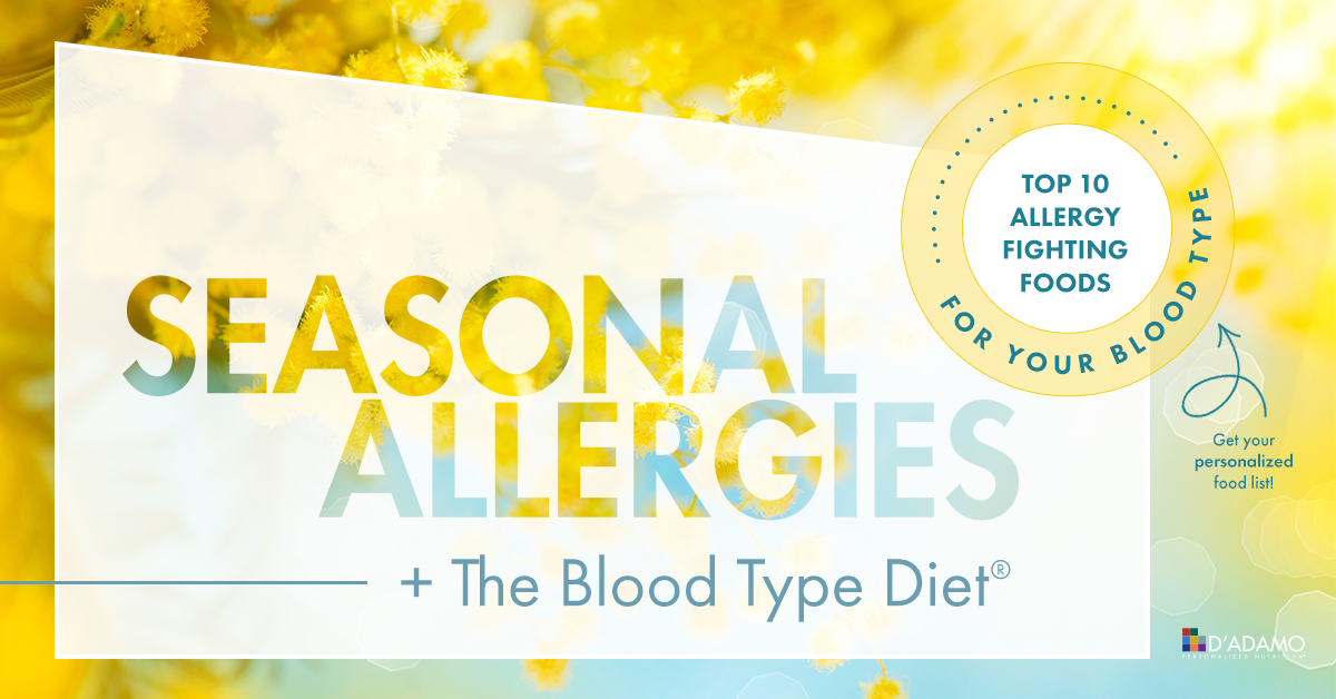 For those seeking an even more targeted approach to addressing allergies, Dr. Peter D’Adamo’s book, Allergies: Fight Them with The Blood Type Diet, offers individualized treatment plans for every blood type. The book provides blood-type-specific protocols for targeted vitamins, supplements and herbs—including a four-week plan for getting started and practical strategies for eating and exercising.