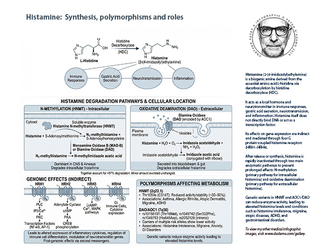 Histamine: Synthesis, polymorphisms and roles